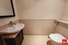 The residence features a large open-plan living and dining area that connects to a private balcony, creating a bright and airy living environment. The semi-open kitchen is well-designed with ample storage and workspace. Both bedrooms are well-proportioned with built-in wardrobes, while the unit benefits from three bathrooms, including a guest powder room for added practicality.