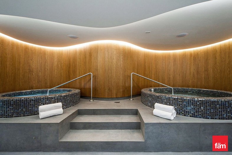 - Access to shared pool, gym, steam room, and spa facilities