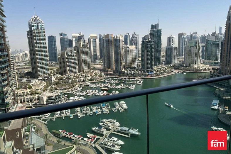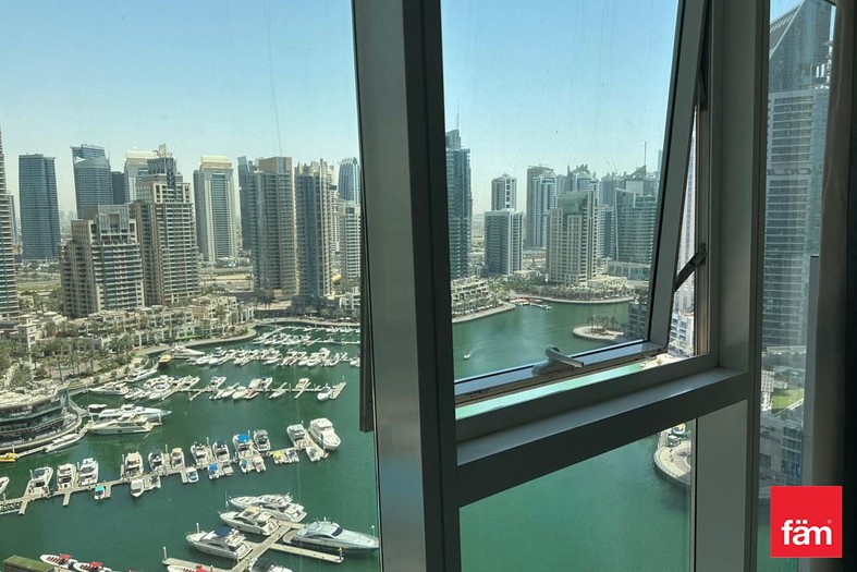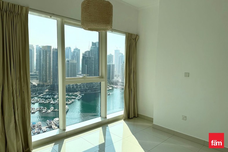 The apartment welcomes you with a bright and open living space enhanced by floor-to-ceiling windows, offering panoramic views of the Marina skyline and serene waterways. The unfurnished layout allows full flexibility to design your ideal home. Both bedrooms are well-proportioned with built-in wardrobes, ensuring comfort and convenience. A modern fitted kitchen complements the functional design, while the private balcony provides a perfect spot to enjoy the tranquil waterfront scenery.
