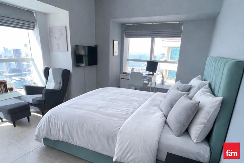 Enjoy your morning coffee while watching yachts sail by, skydivers soaring above, and savoring postcard perfect sunsets. This apartment, situated on the northeast side of Dubai Marina, provides the best views while keeping you conveniently away from traffic.