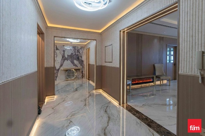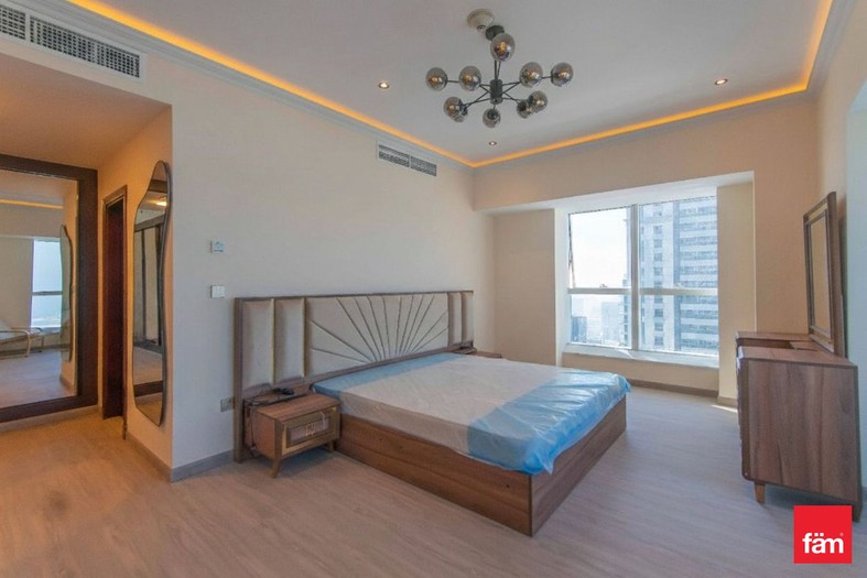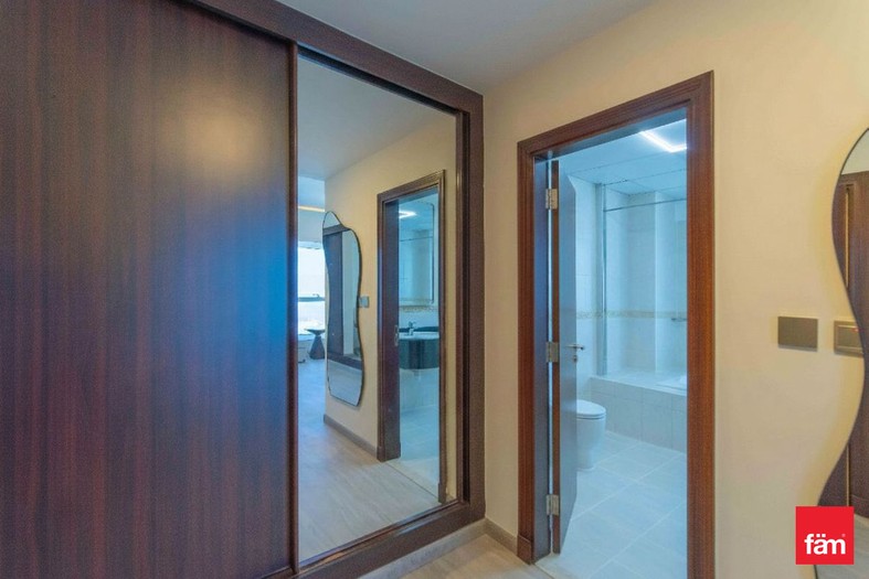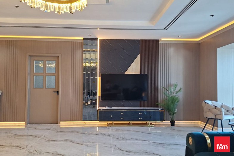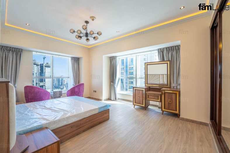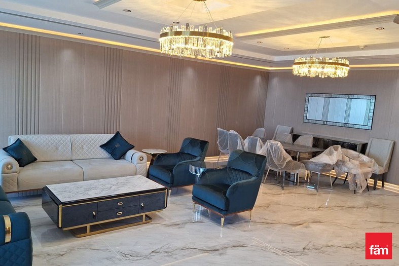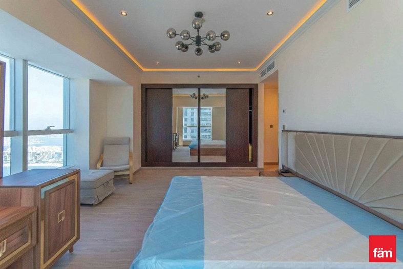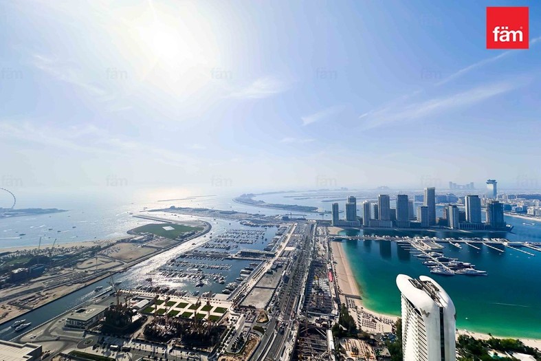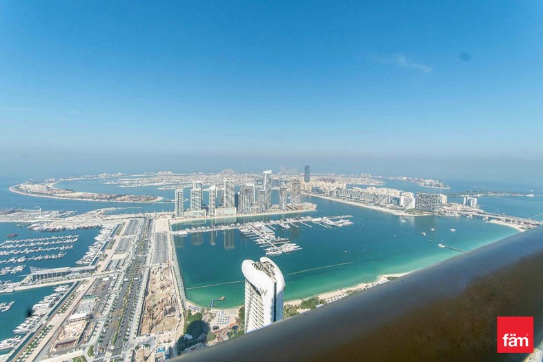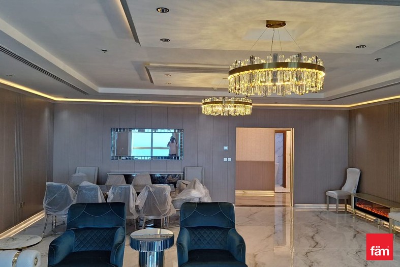 This sophisticated penthouse features five bathrooms and boasts partial sea views, providing a serene and luxurious living environment. Designed for comfort and convenience, the apartment includes built-in wardrobes, a modern open kitchen equipped with appliances, a pantry, maid and laundry rooms, ample storage space, and a walk-in closet. The spacious balcony and high-floor positioning offer stunning waterfront and landmark vistas, enhancing the property’s appeal.