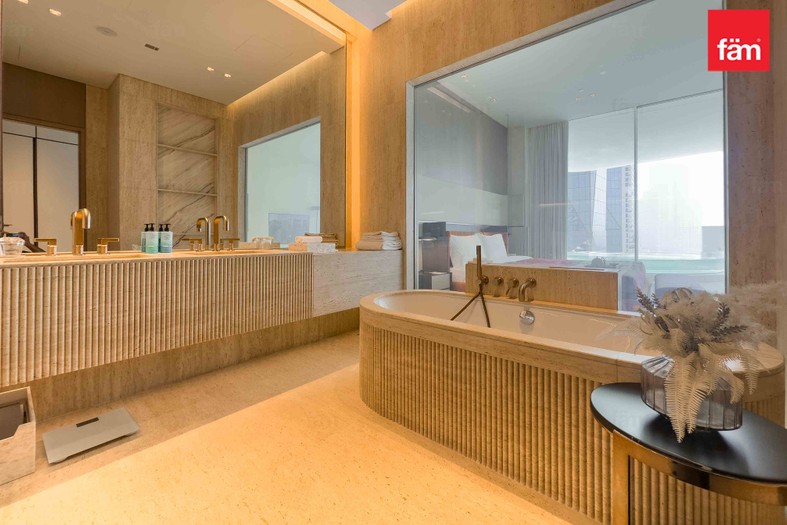 • Private Plunge Pool on an expansive terrace offering panoramic views of the Dubai Eye, Palm Jumeirah, and the Marina skyline.