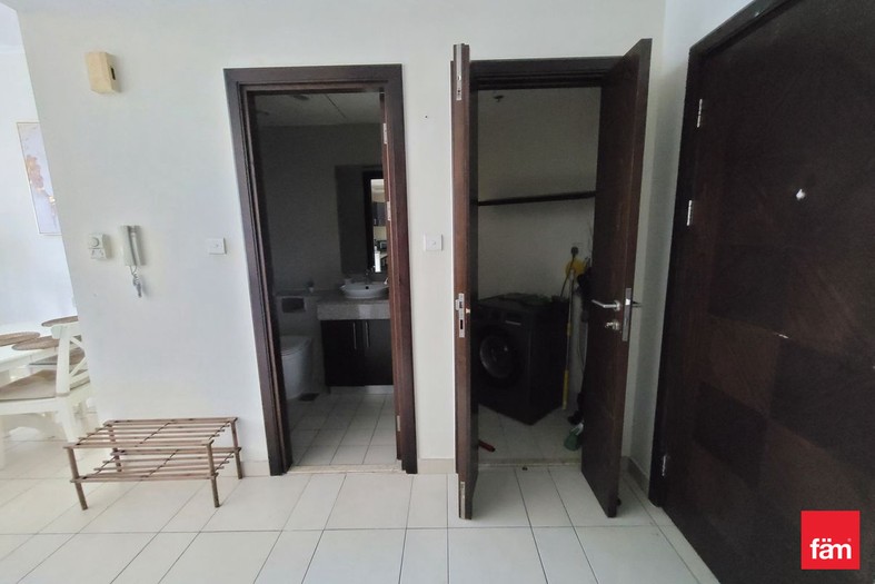 The apartment features one bedroom, two bathrooms, and a well-appointed layout designed for comfort and convenience. Residents will enjoy a community view from the balcony, built-in wardrobes, and a fully equipped kitchen with appliances. Additional benefits include air conditioning, a dedicated laundry room, and access to basement parking.