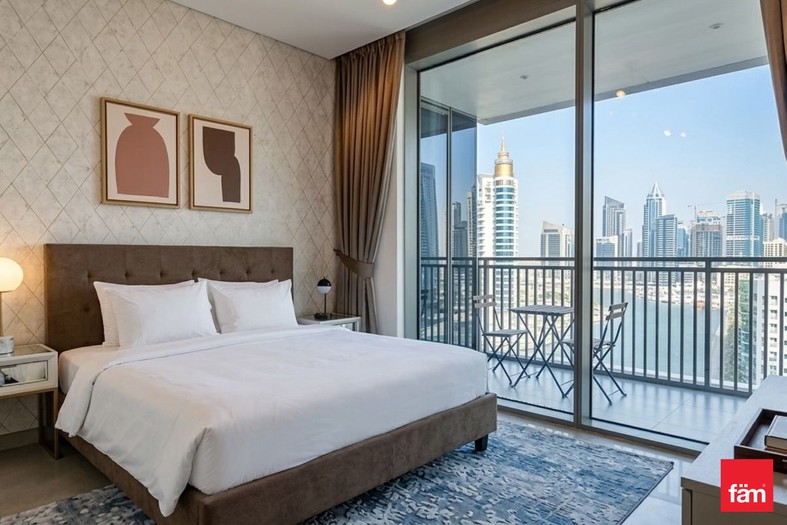 Positioned on a well-placed floor, this apartment offers marina views and will be vacant in April. The unit is fully furnished and features a practical layout with a bright open-plan living and dining area, complemented by floor-to-ceiling windows allowing strong natural light throughout. Both bedrooms are well-sized with built-in wardrobes, and the apartment includes modern bathrooms and a guest powder room.